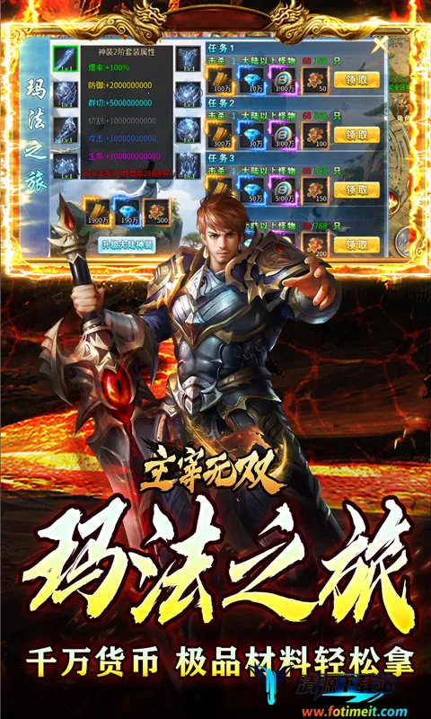3、资源掉落超丰富,千万货币、稀有材料、神器装备等在地图全掉落,挂机就能轻松获取,打金打宝两不误。