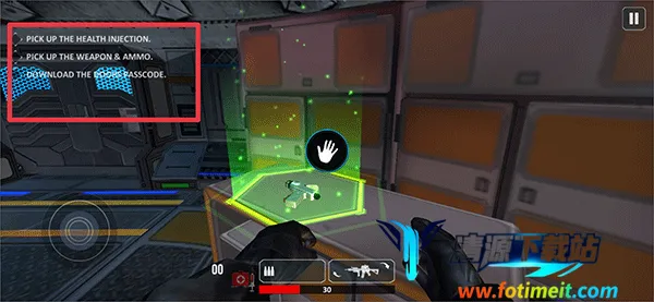 3、进入游戏后根据左上角任务要求完成任务,走到注射器位置将注射器拾取