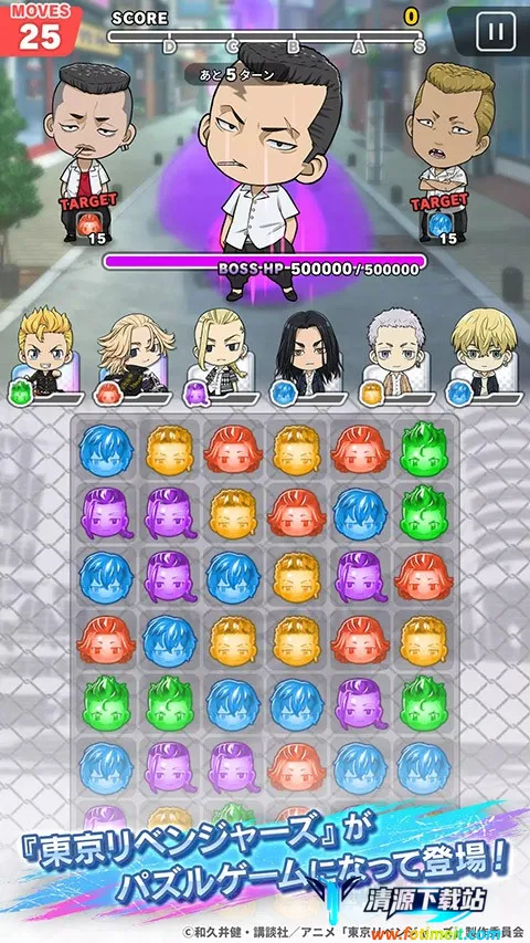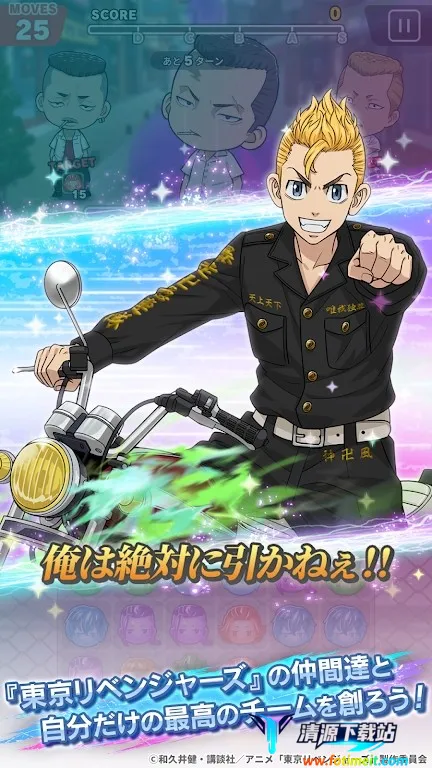 嘿,喜欢《东京复仇者》的朋友们有福啦!现在有一款超棒的基于这部动漫改编的游戏。在游戏里,你能化身主角花垣武道,结识佐野万次郎等标志性人物,和伙伴们一起并肩作战,对抗街头黑势力。它有着原汁原味的动漫体验,真实的动漫人物配音,边玩边听超有趣。剧情在动画基础上增加了新内容,全新的三消玩法很有挑战性,操作上限高。你可以通过各种方法认识全新角色并让他们加入队伍,共同突破。这里多种角色可选,除原作角色还有不少游戏内原创的。跟随剧情指引,以独特视角体验。创新消除玩法,消除方块影响作战效果,还有明确的作战提示,考验临场反应。打出高分操作会有超帅的角色技能CG显示。快来这款游戏,重温热血与羁绊交织的东京街头传奇,享受不一样的游戏乐趣吧!