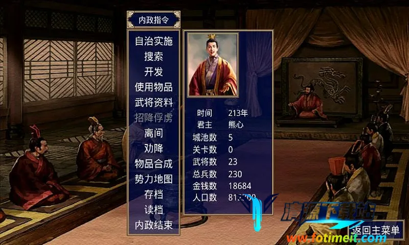 3. 特色游戏系统:拥有后宫结婚生子系统,可坐拥江山美人;还有必杀技系统,能扭转战局一决胜负;智将强化、土兵强化以及事件系统等,让游戏体验更加丰富,历史情景重现,带来独特感受。