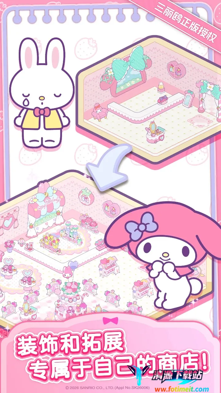 在这款游戏中,你能根据喜好装饰专属店铺,用500多种萌趣装饰展现独特魅力。通过合并相同物品、角色或建筑,生成更高级别物品,合成出超可爱的三丽鸥萌物。顾客穿上搭配服装后在Glamgram展示造型获点赞。还能帮Hello Kitty和库洛米重建购物城,解锁各类商店,感受治愈故事。更有30多种三丽鸥角色等你收集培养,收集图鉴解锁特别奖励,开启精彩的店铺经营之旅。
