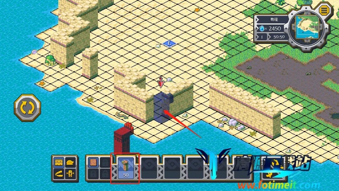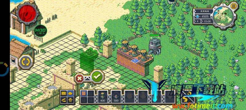 8、如果点击【√】没有反应,那就意味着没有放好,可以点击左方的按钮对围墙进行旋转,然后再点击【√】;