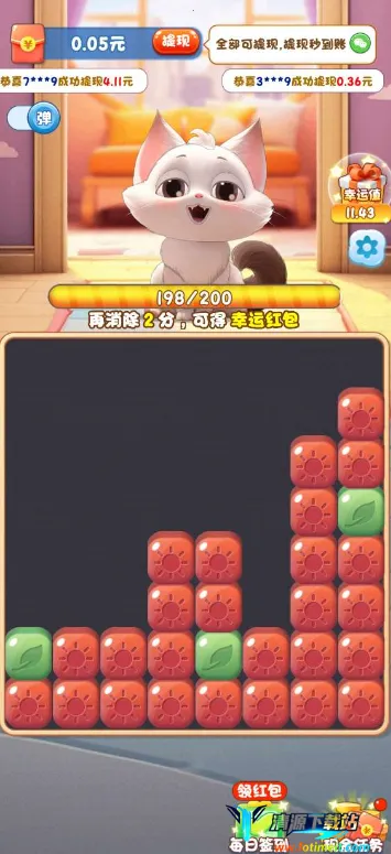 如果你喜欢休闲消除闯关游戏,那喵喵之王绝对值得一玩!它有着可爱的卡通风格,画面精致,操作超简单,点击相同颜色宝石就能消除,背景音乐欢快,挑战难度还会逐渐增加,能让你尽情享受独特的消除乐趣。而且,它的奖励超丰富,通关就能获得提现红包奖励,真正实现娱乐赚钱两不误。游戏还有多样化的道具系统,像炸弹、变色宝石等道具,帮你轻松过关,增加趣味性。丰富的任务系统,完成任务能得丰厚奖励,给你满满的满足感和成就感。新人加入还有专属红包奖励,惊喜满满。现在喵喵之王 v5 最新版本更新啦,肯定带来了更多精彩内容,比如可能优化了画面效果,让卡通世界更萌趣;或许调整了道具使用方式,让闯关更有策略性;也可能增加了新任务类型,给你更多挑战和奖励。快来体验喵喵之王 v5 的全新魅力吧!